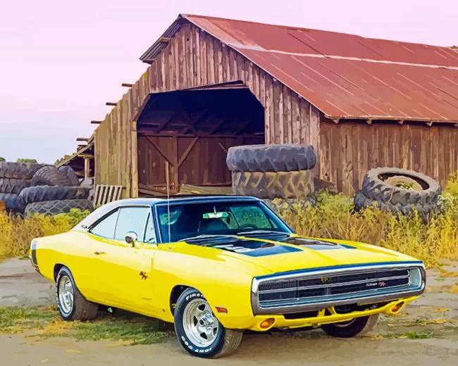 Aesthetic Dodge Charger Yellow Art Diamond Painting