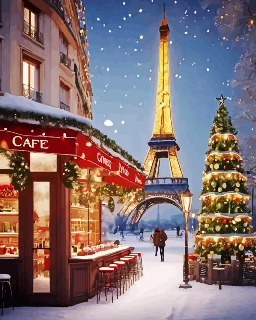 Aesthetic Eiffel Tower Christmas Art Diamond Painting