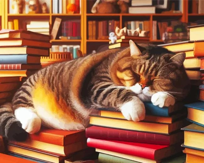 Aesthetic Sleepy Cat Bookshop Art Diamond Painting