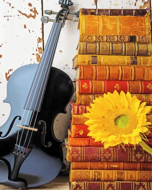 Black Violin And Stacked Books Diamond Painting