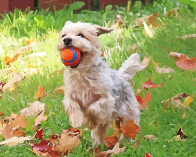 Blond Morkie Playing With Ball Diamond Painting
