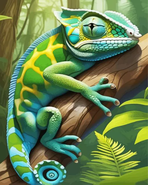 Blue And Green Chameleon Diamond Painting