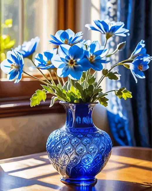 Blue Glass Flower Vase Diamond Painting