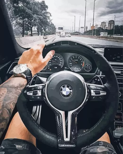 Bmw Steering Wheel With Hand Diamond Painting