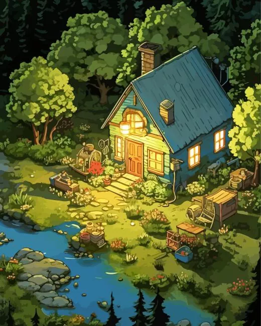 Cabin In Forest Diamond Painting