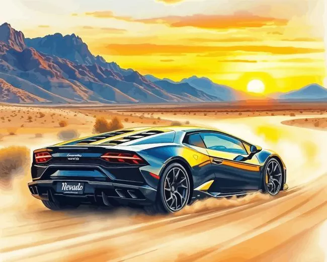 Car Driving Into Sunset Diamond Painting