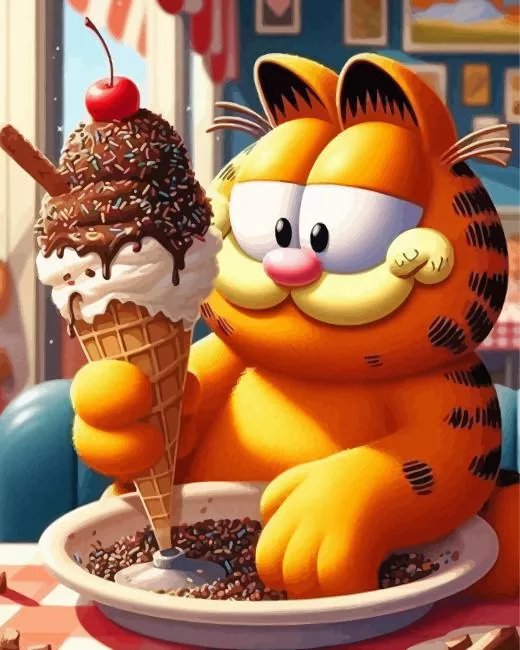Cartoon Cat Eating Ice Cream Diamond Painting