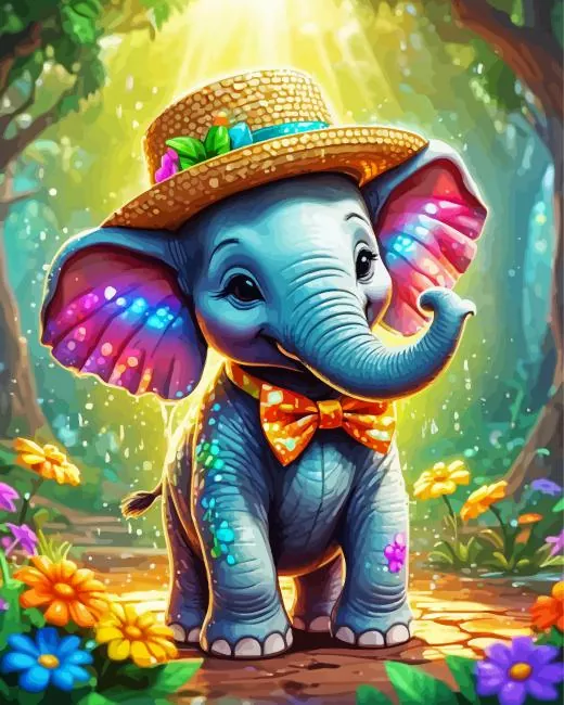 Cartoon Elephant Wearing A Hat Diamond Painting