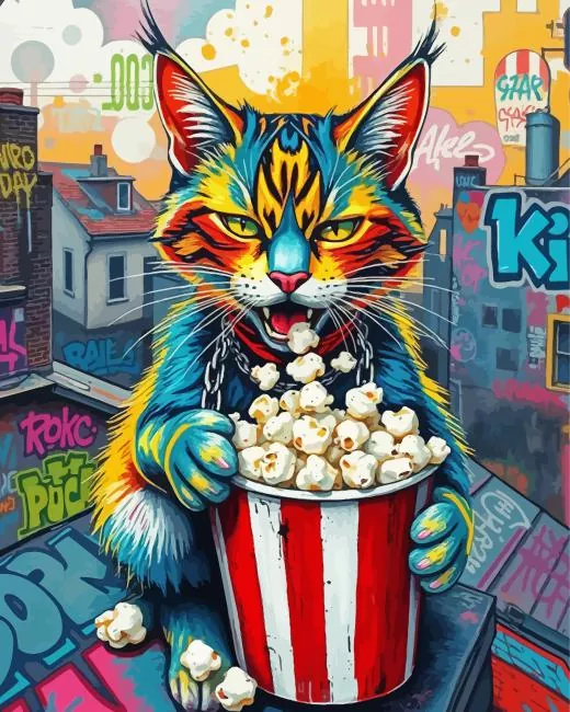 Cat Eating Popcorn On The Roof Diamond Painting