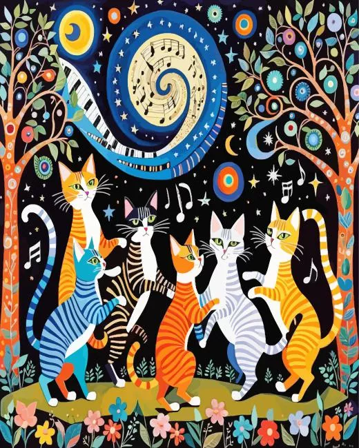 Cats Dancing Under The Stars Art Diamond Painting