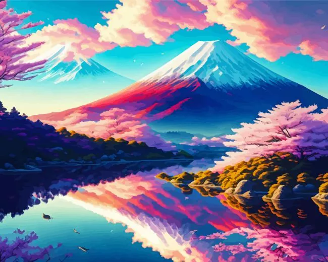 Cherry Blossom Mount Fuji Diamond Painting