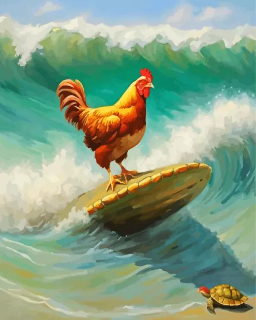 Chicken On A Surfboard Art Diamond Painting