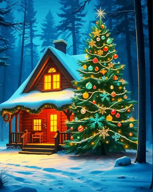 Christmas Cabin In The Woods Diamond Painting