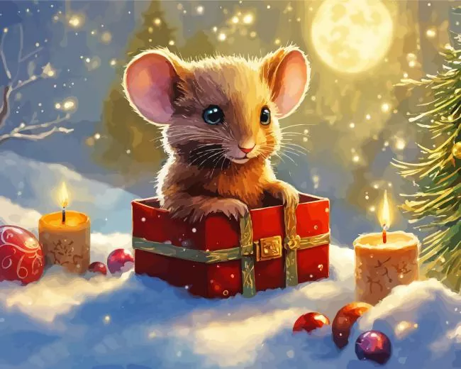 Cute Christmas Mouse Art Diamond Painting