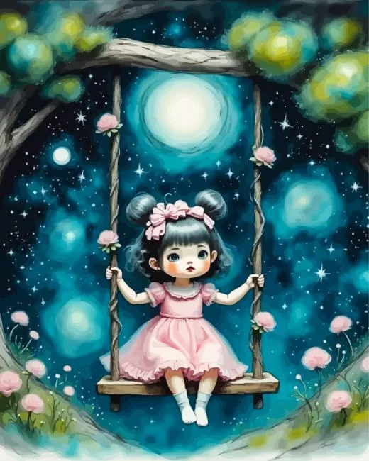 Cute Little Girl On A Swing Diamond Painting