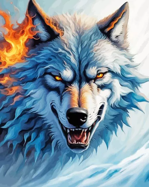 Fire And Ice Wolf Art Diamond Painting
