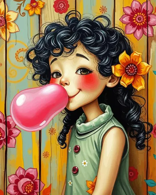 Funny Whimsical Girl With Bubblegum Diamond Painting