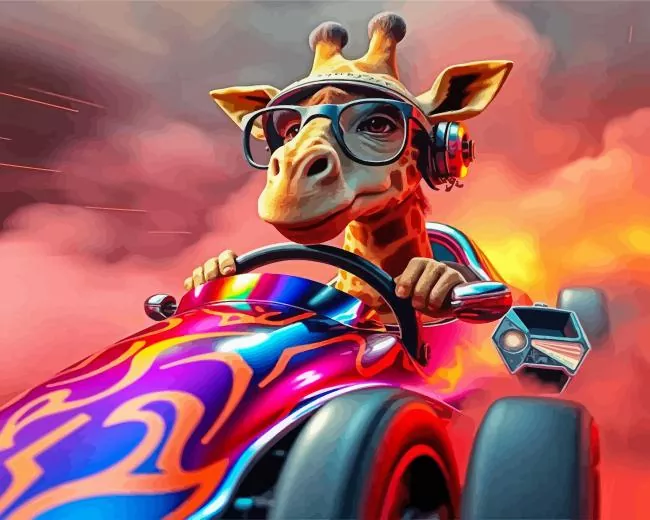 Giraffe Driving Car Diamond Painting