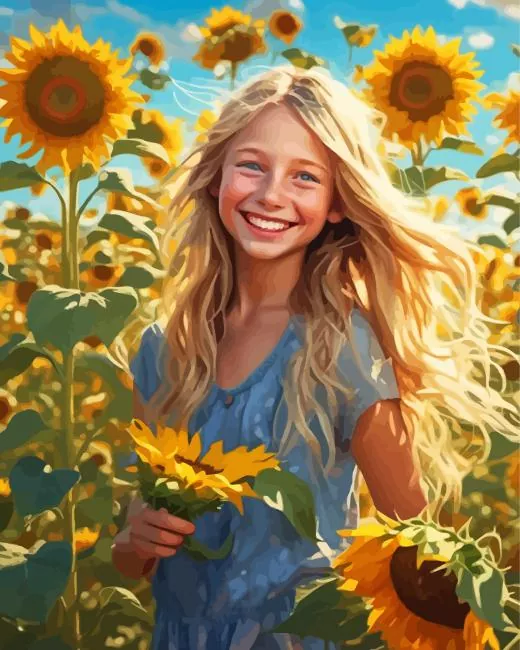Girl In Sunflower Field Diamond Painting