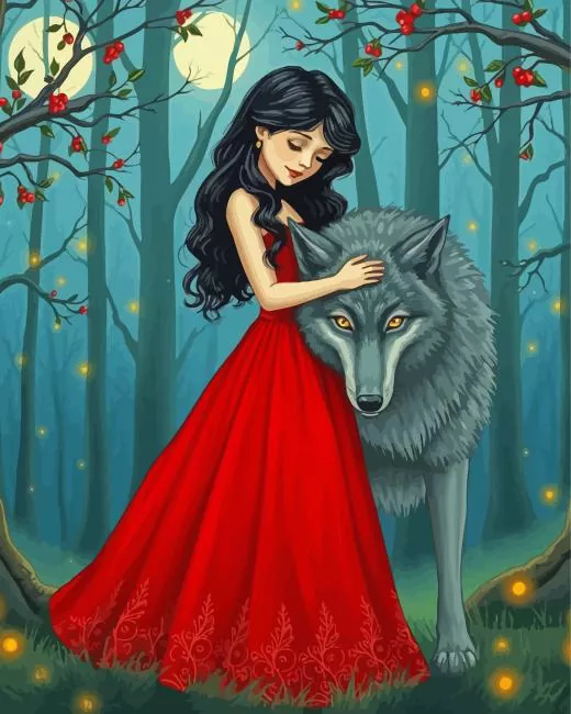 Girl With A Wolf Diamond Painting