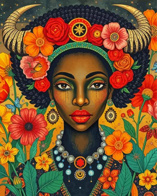 Goddess Black Taurus Woman Art Diamond Painting