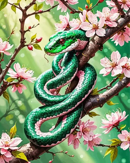 Green Pink Snake On Branch Diamond Painting