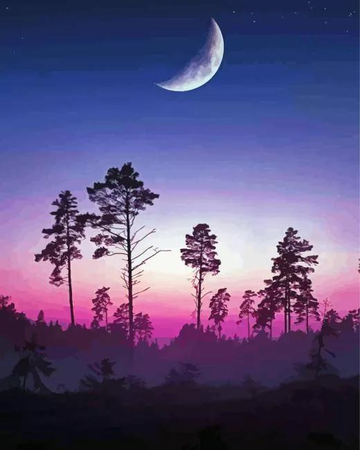 Half Moon Sunset With Trees Silhouette Diamond Painting