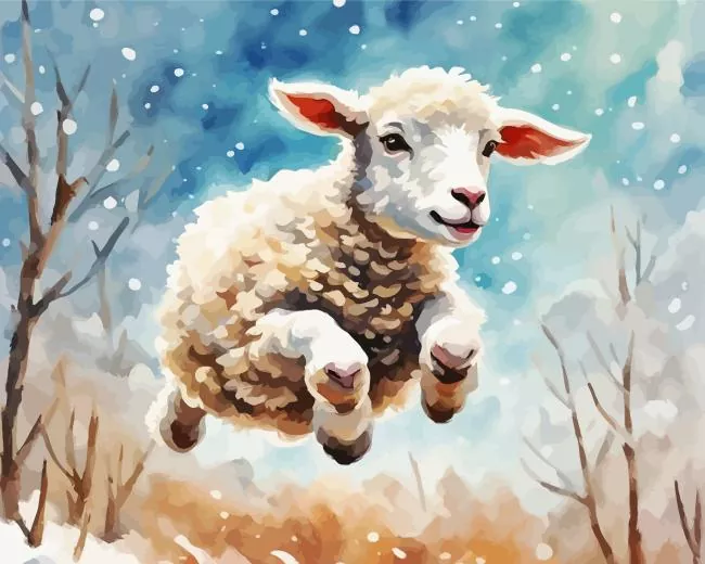 Lamb Jumping In Snow Diamond Painting