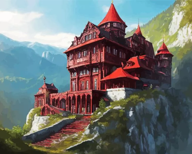Red Fantasy Mountain Castle Diamond Painting