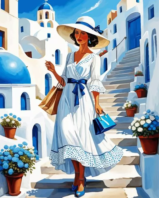Santorini Flowers Art Diamond Painting