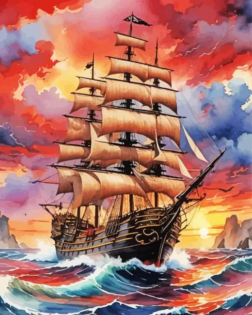 Ship In Sunset Art Diamond Painting