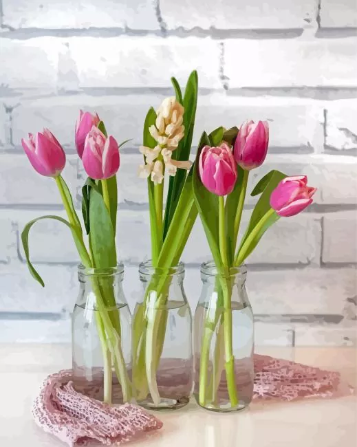 Tulips Flowers In Milk Bottle Diamond Painting