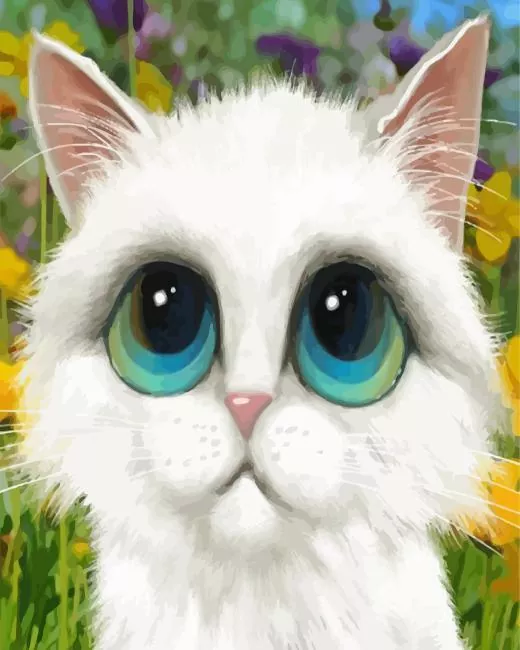 White Cat With Big Eyes Diamond Painting